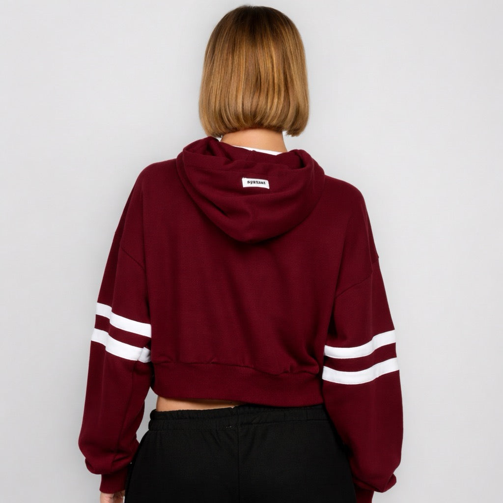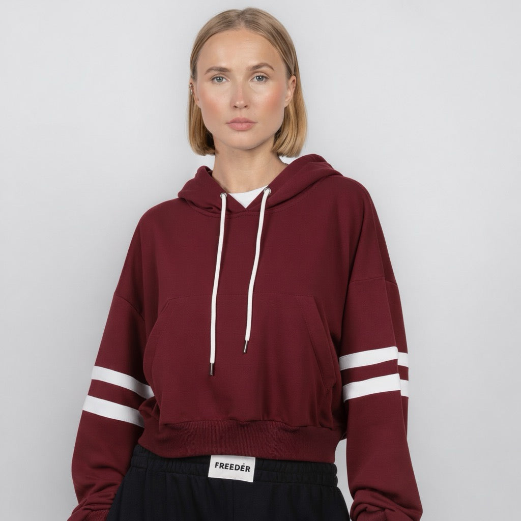 A crooped hoodie with a bold oversized front pocket, crafted from 100% premium cotton.